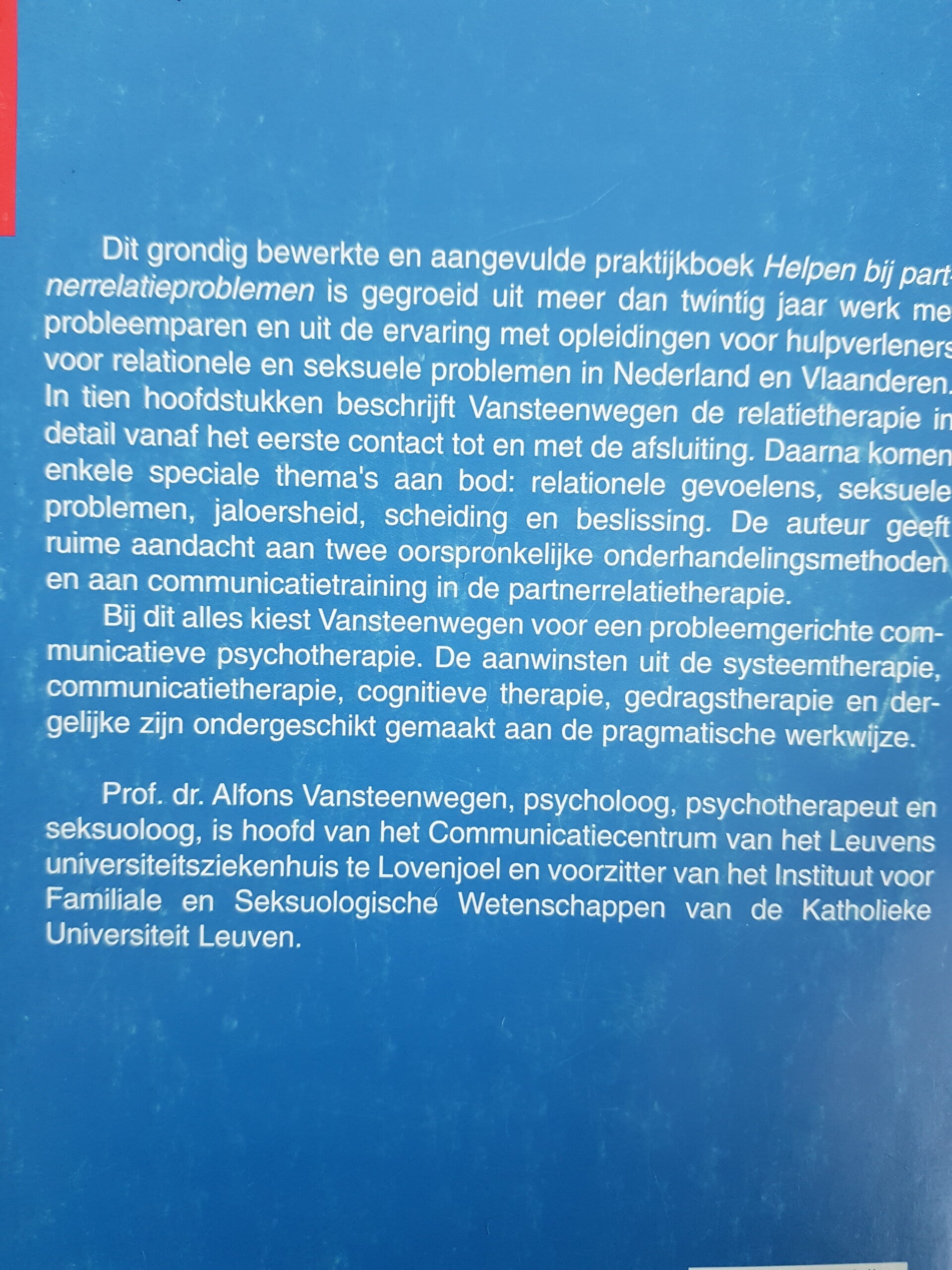 Deze derde, herziene druk is voortgekomen uit meer dan dertig jaar werken met paren met problemen en uit de ervaring met opleidingen voor hulpverleners voor relationele en seksuele problemen in Nederland en Vlaanderen. Het boek is grondig bewerkt en aangevuld en houdt rekening met de nieuwe trends die zich recent in de relatietherapie aftekenen, zoals meer aandacht voor: