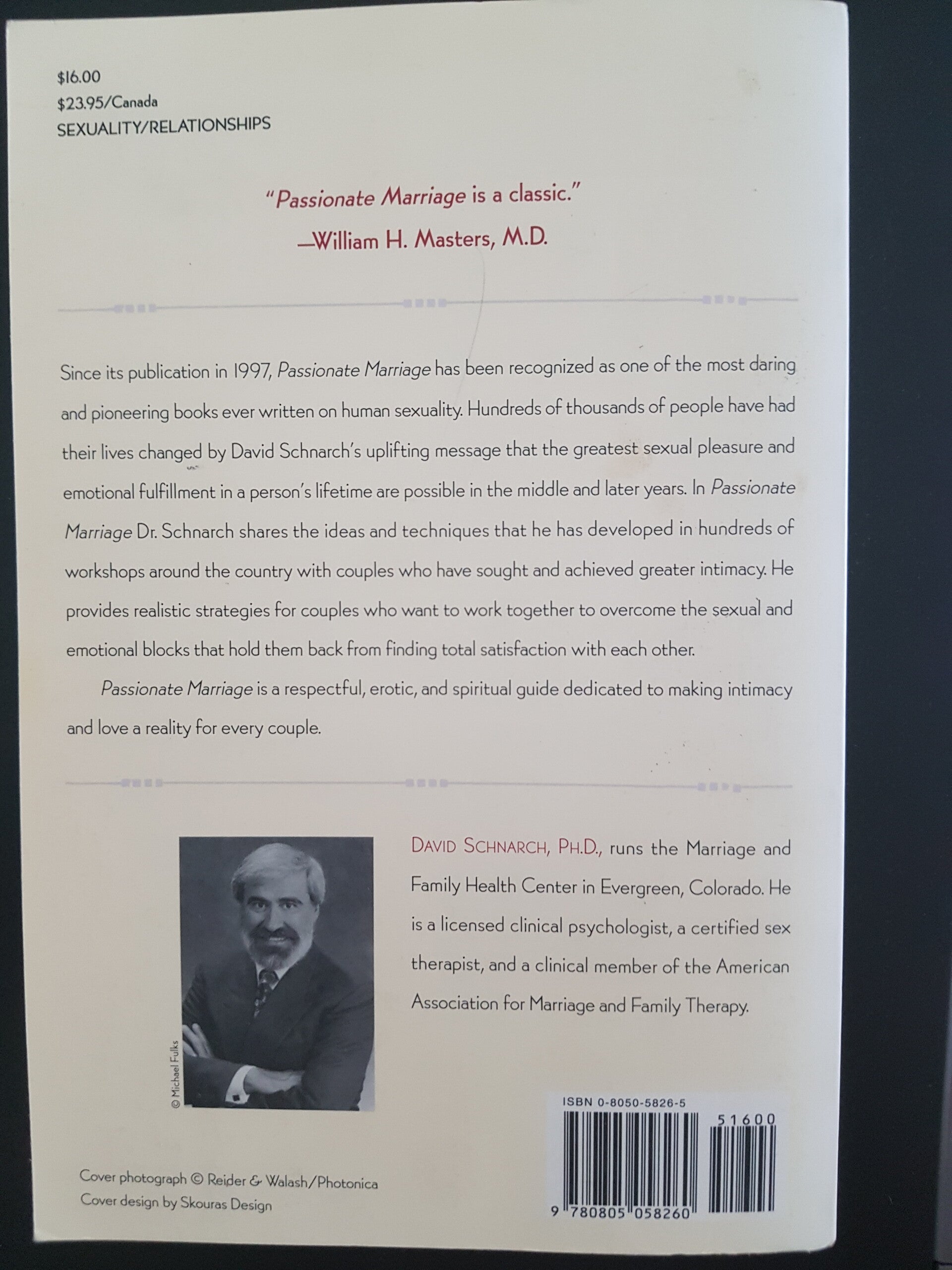 Passionate Marriage has long been recognized as the pioneering book on intimate human relationships. Now with a new preface by the author, this updated edition explores the ways we can keep passion alive and even reach the height of sexual and emotional fulfillment later in life. Acclaimed psychologist David Schnarch guides couples toward greater intimacy with proven techniques developed in his clinical practice and worldwide workshops. Chapters-covering everything from understanding love relationships to helpful tools for connections to keeping the sparks alive years down the road-provide the scaffolding for overcoming sexual and emotional problems. This inspirational book is sure to help couples invigorate their relationships and reach the fullest potential in their love lives.