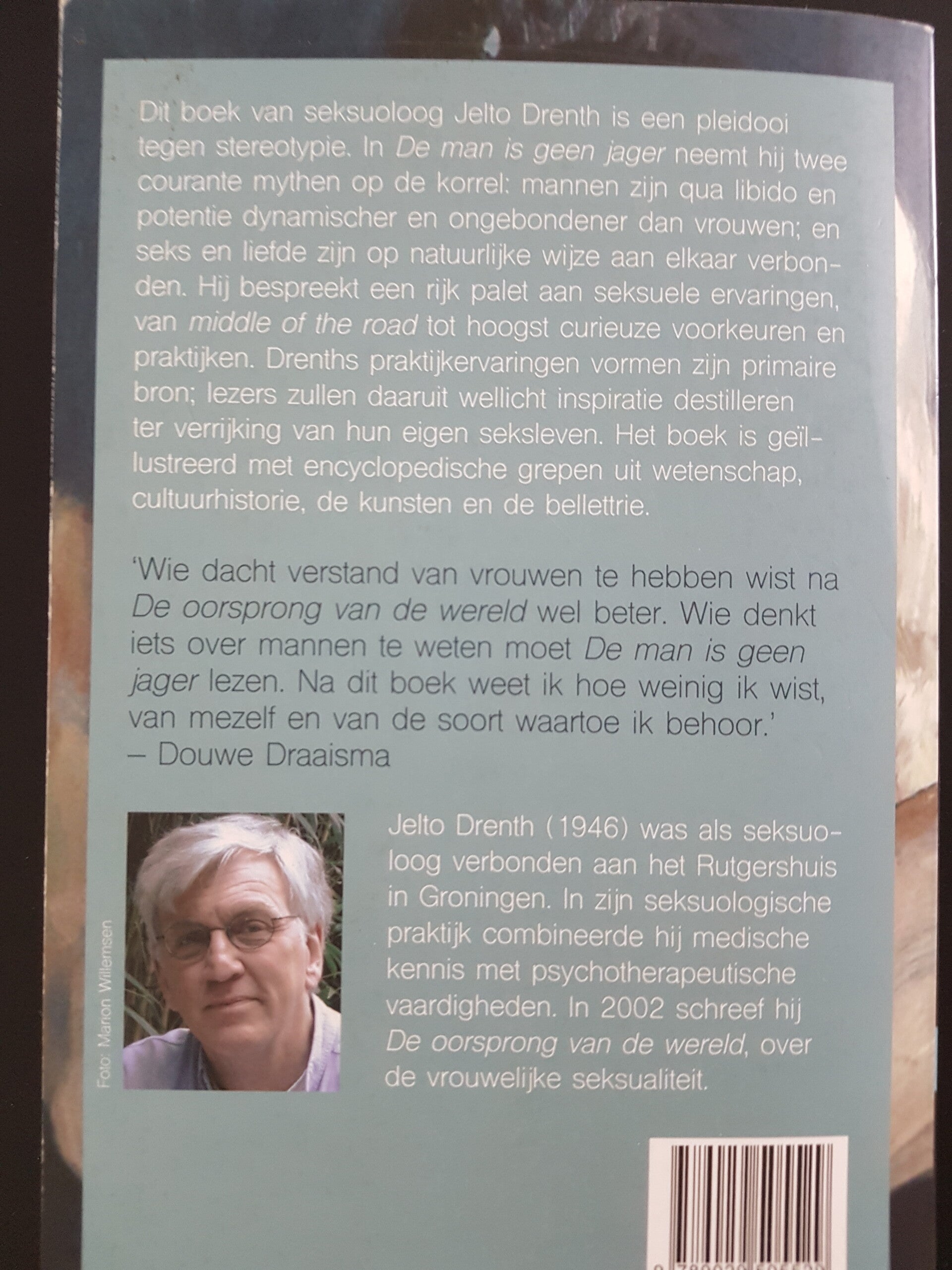 Dit boek van seksuoloog Jelto Drenth is een pleidooi tegen stereotypie. In De man is geen jager neemt hij twee courante mythen op de korrel: mannen zijn qua libido en potentie dynamischer en ongebondener dan vrouwen; en seks en liefde zijn op natuurlijke wijze aan elkaar verbonden. Hij bespreekt een rijk palet aan seksuele ervaringen, van middle of the road tot hoogst curieuze voorkeuren en praktijken. Drenths praktijkervaringen vormen zijn primaire bron; lezers zullen daaruit wellicht inspiratie destilleren ter verrijking van hun eigen seksleven. Het boek is geillustreerd met encyclopedische grepen uit wetenschap, cultuurhistorie, de kunsten en de bellettrie.