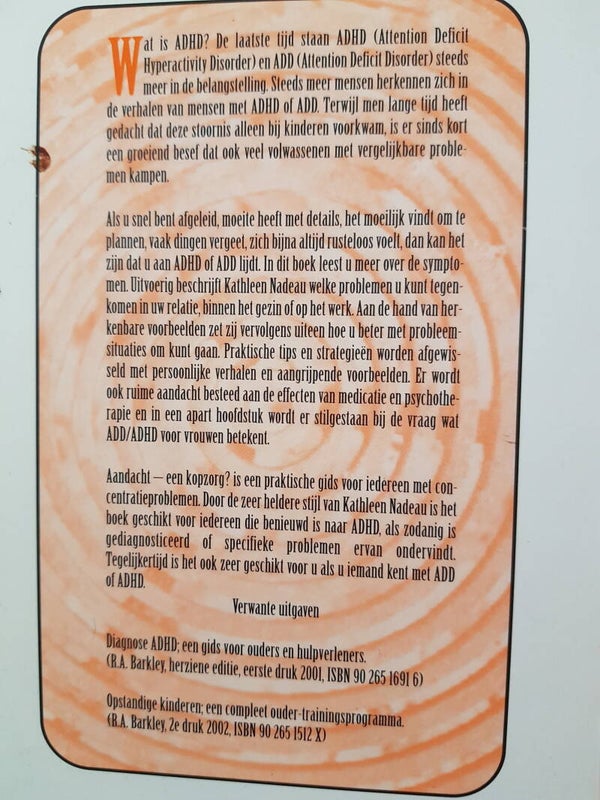 Aandacht, een kopzorg - ADHD, een gids voor volwassenen met concentratieproblemen, Kathleen Nadeau