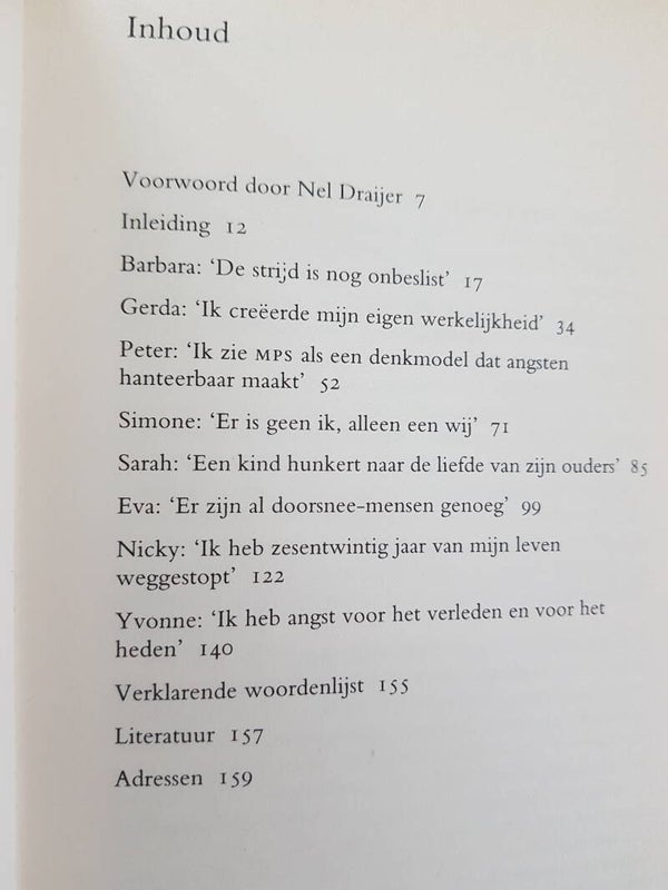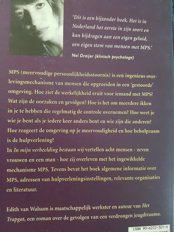 MPS (meervoudige persoonlijkheidsstoornis) is een ingenieus overlevingsmechanise van mensen die opgroeiden in een gestoorde omgeving. Hoe ziet de werkelijkheid eruit voor iemand met MPS? Wat zijn de oorzaken en gevolgen? Hoe is het om meerdere ikken in je te hebben die regelmatig de controle overnemen? Hoe weet je wie je bent als je iedere keer anders bent en wie zijn die anderen? Hoe reageert de omgeving op je meervoudigheid en hoe behulpzaam is de hulpverlening? In 'In mijn verbeeldiung bestaan wij' vertellen mensen - zeven vrouwen en een man - hoe zij overleven met het ingewikkelde mechanisme MPS.