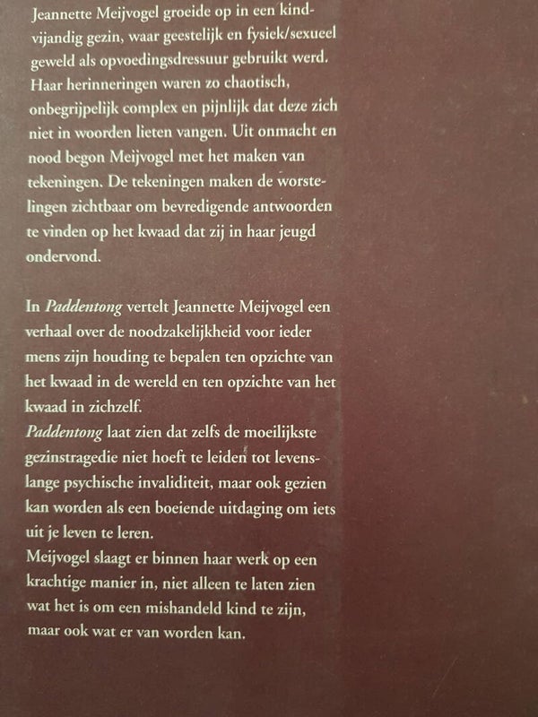 In Paddentong vertelt Jeanette Meijvogel een verhaal over de noodzakelijkheid voor ieder mens zijn houding te bepalen ten opzichte van het kwaad in de wereld en ten opzichte van het kwaad in zichzelf.