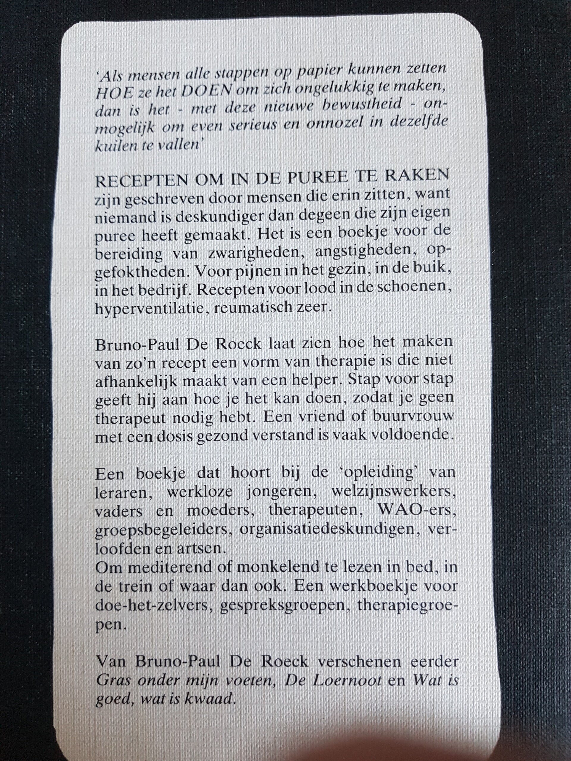 Recepten om in de puree te raken / doe-het-zelf therapie, Bruno-Paul De Roeck