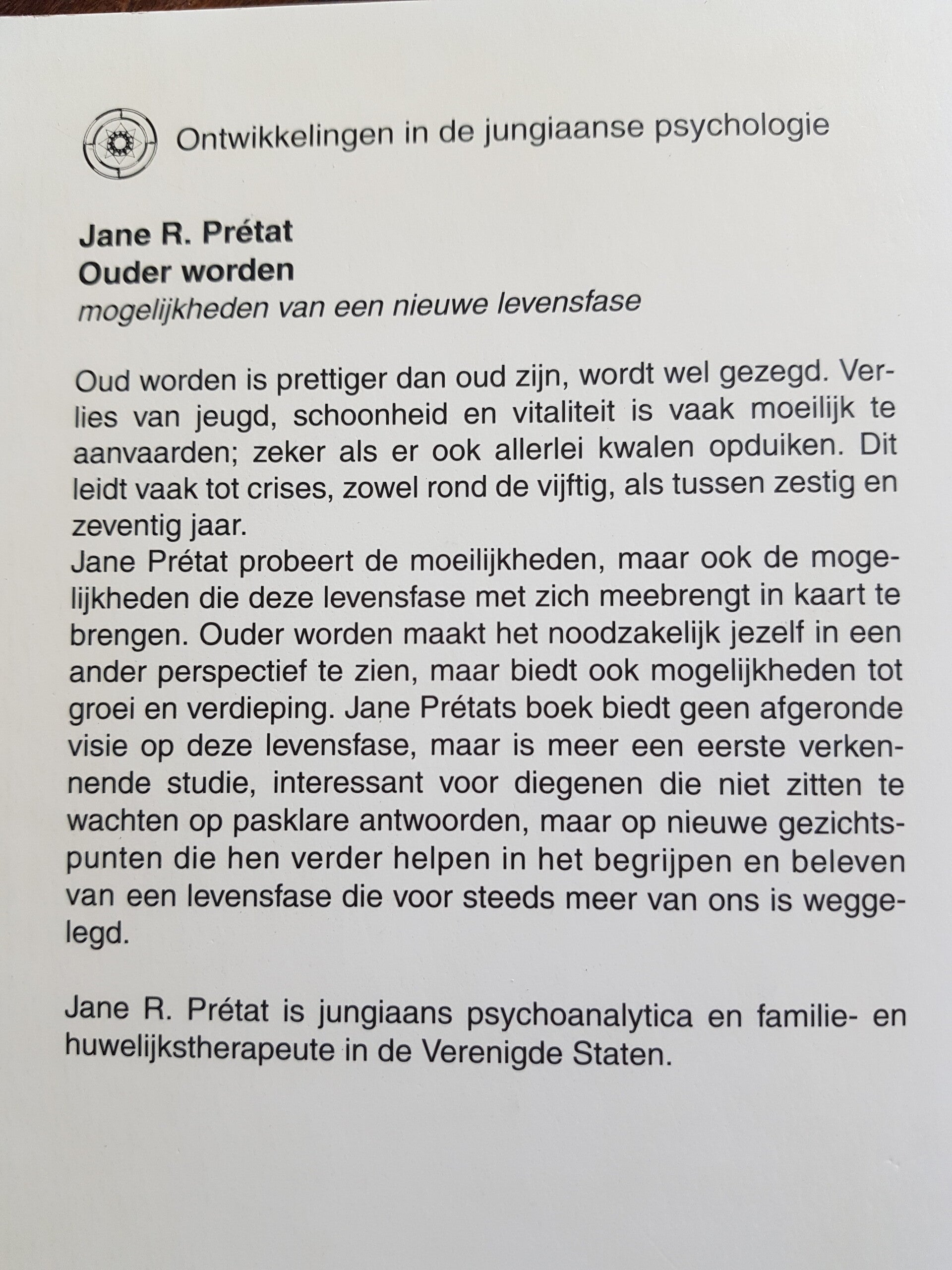 Oud worden is prettiger dan oud zijn, wordt wel gezegd. Jane Prétat probeert de moeilijkheden én de mogelijkheden die deze levensfase met zich meebrengt, in kaart te brengen. Ouder worden dwingt je jezelf in een ander perspectief te zien, maar biedt ook mogelijkheden tot groei en verdieping.