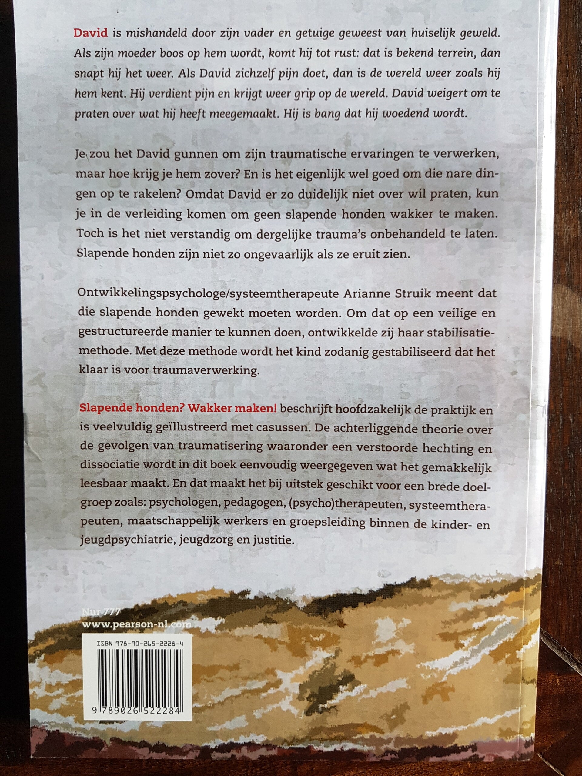 David is mishandeld door zijn vader en getuige geweest van geweld tussen zijn ouders. Hij ontploft bij het minste of geringste. 's Avonds in bed is hij bang en hij slaapt slecht. Op school kan hij zich niet concentreren. David wil niet praten over wat hij heeft meegemaakt. Hij ontkent dat hij er last van heeft. Is het eigenlijk wel goed om die nare dingen op te rakelen? Omdat David er zo duidelijk niet over wil praten, kun je in de verleiding komen geen slapende honden wakker te maken. Slapende honden zijn echter niet zo ongevaarlijk als ze eruitzien. Arianne Struik, ontwikkelingspsychologe en systeemtherapeute, meent dat die slapende honden moeten worden gewekt. Om dat op een veilige en gestructureerde manier te kunnen doen, ontwikkelde zij de methode Slapende Honden. Aan deze geheel geactualiseerde tweede druk zijn hoofdstukken over twee doelgroepen toegevoegd: uithuisgeplaatste kinderen en mensen met een verstandelijke beperking. Een andere uitbreiding betreft het traumaverwerkingsverhaal. Dit verhaal is een belangrijk geschenk van de biologische ouders en andere betrokkenen aan het kind om hem voor te bereiden op traumaverwerking. Slapende honden? Wakker maken! beschrijft in de eerste plaats de praktijk en is dan ook rijk geïllustreerd met casussen en toepasbare interventies. Die maken het boek bij uitstek geschikt voor een brede doelgroep zoals psychologen, (psycho)therapeuten, systeemtherapeuten, maatschappelijk werkers, groepsleiding en pleegzorgwerkers, maar ook voor gezinshuisouders en (pleegen adoptief)ouders. De bijlagen en werkbladen zijn bij deze tweede druk raadpleegbaar via een website bij de uitgave. De cd uit de eerste druk is vervallen.