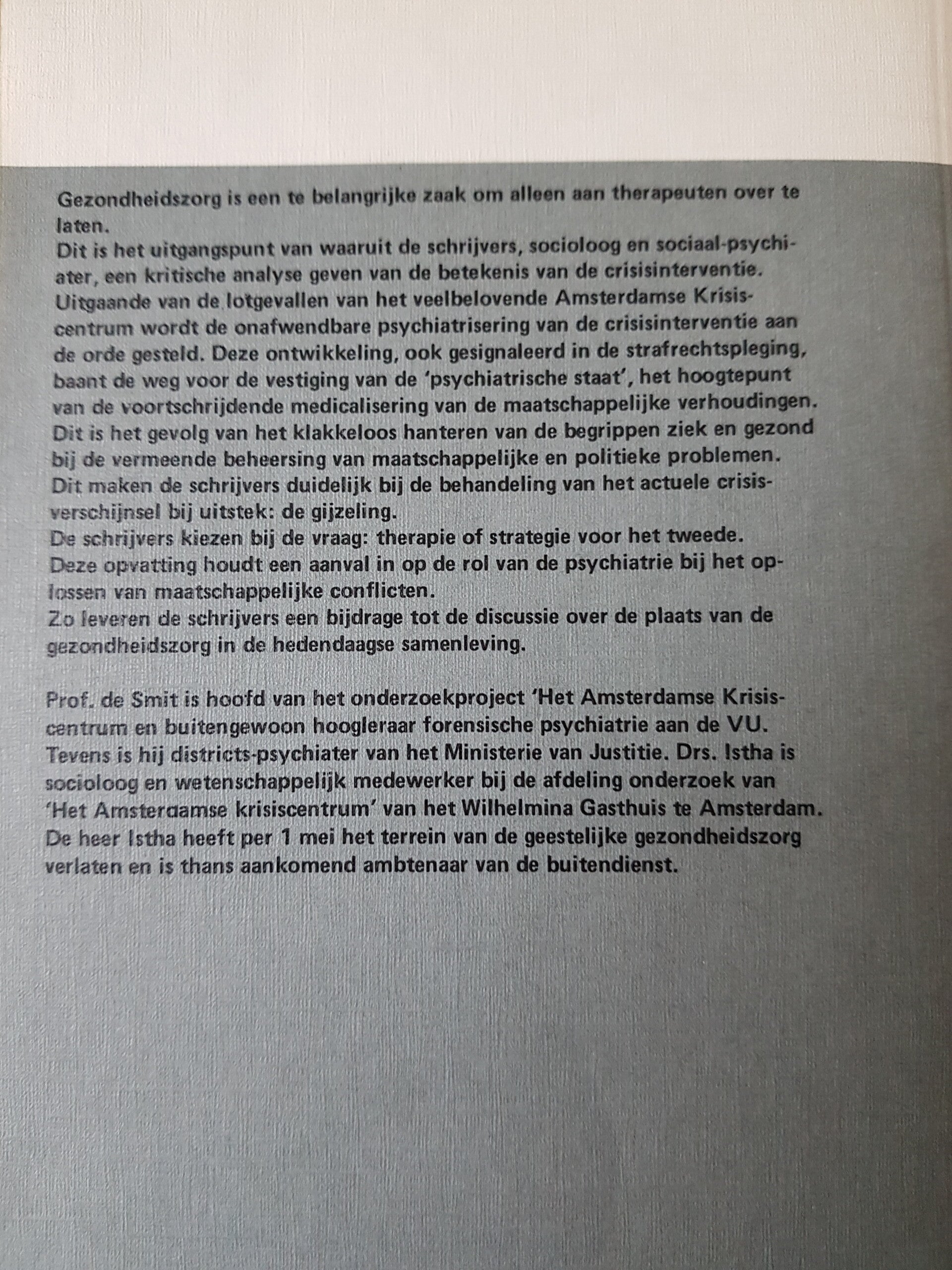 Crisisinterventie: therapie of strategie - D. Istha en N.W. de Smit