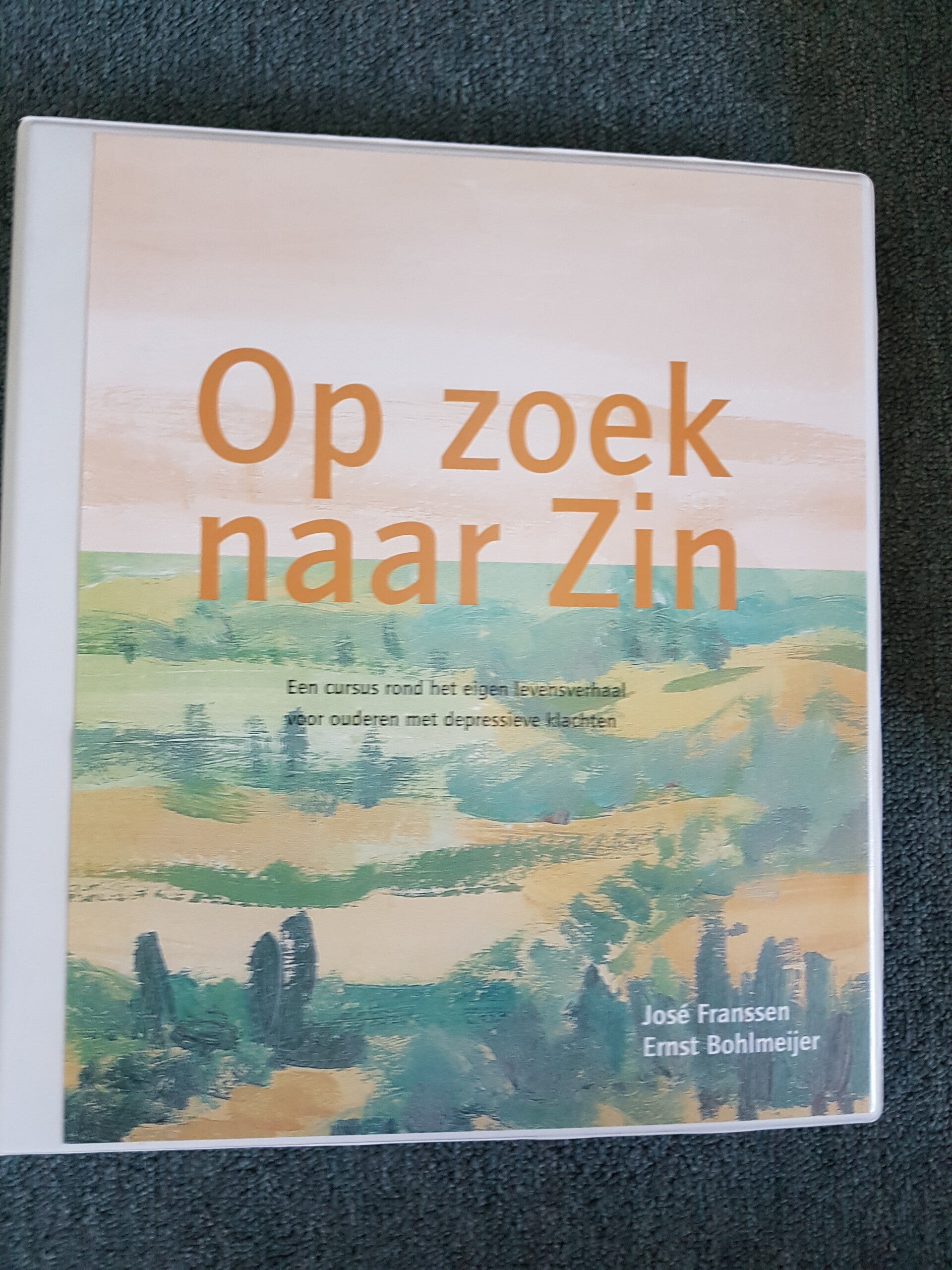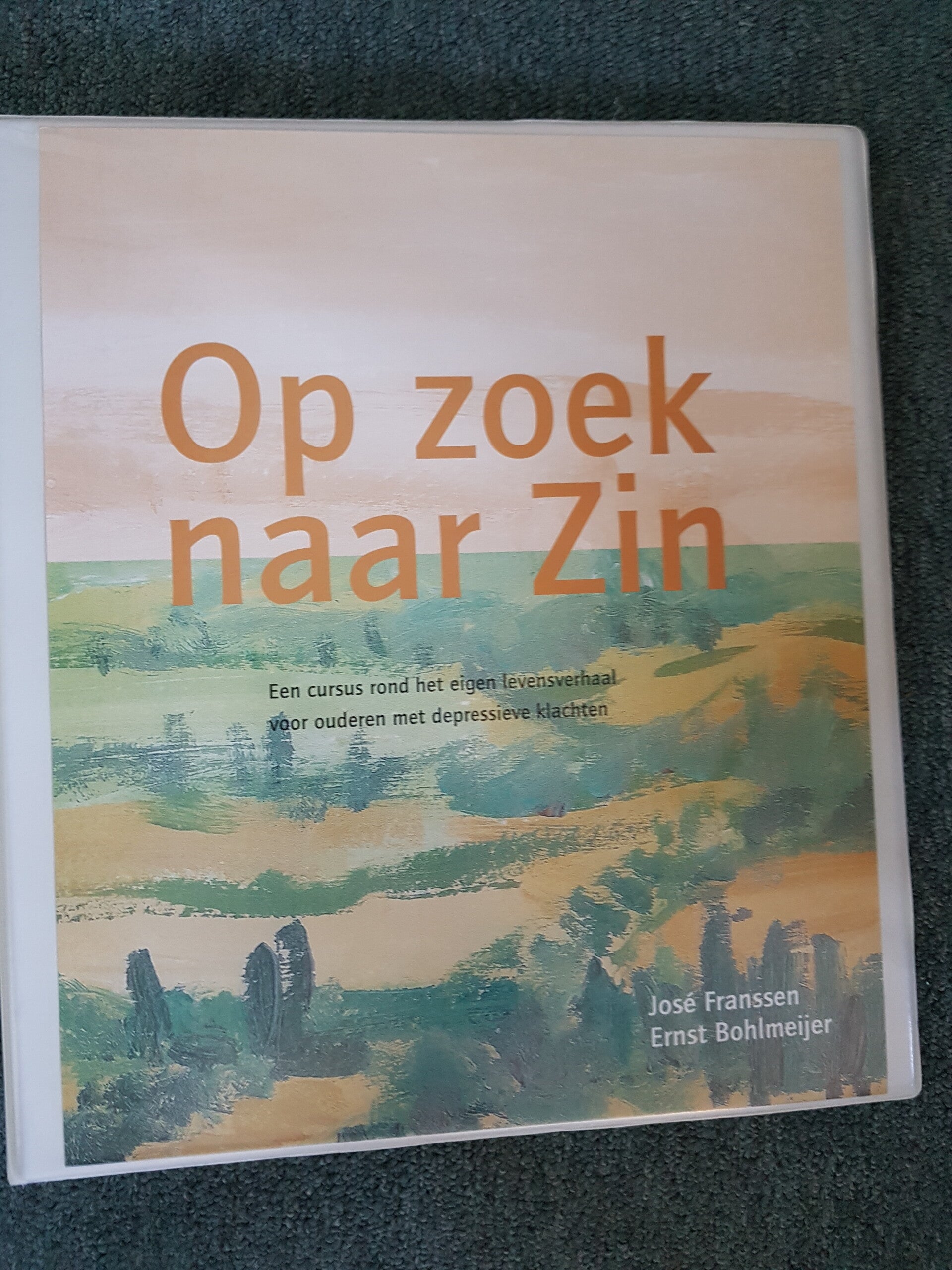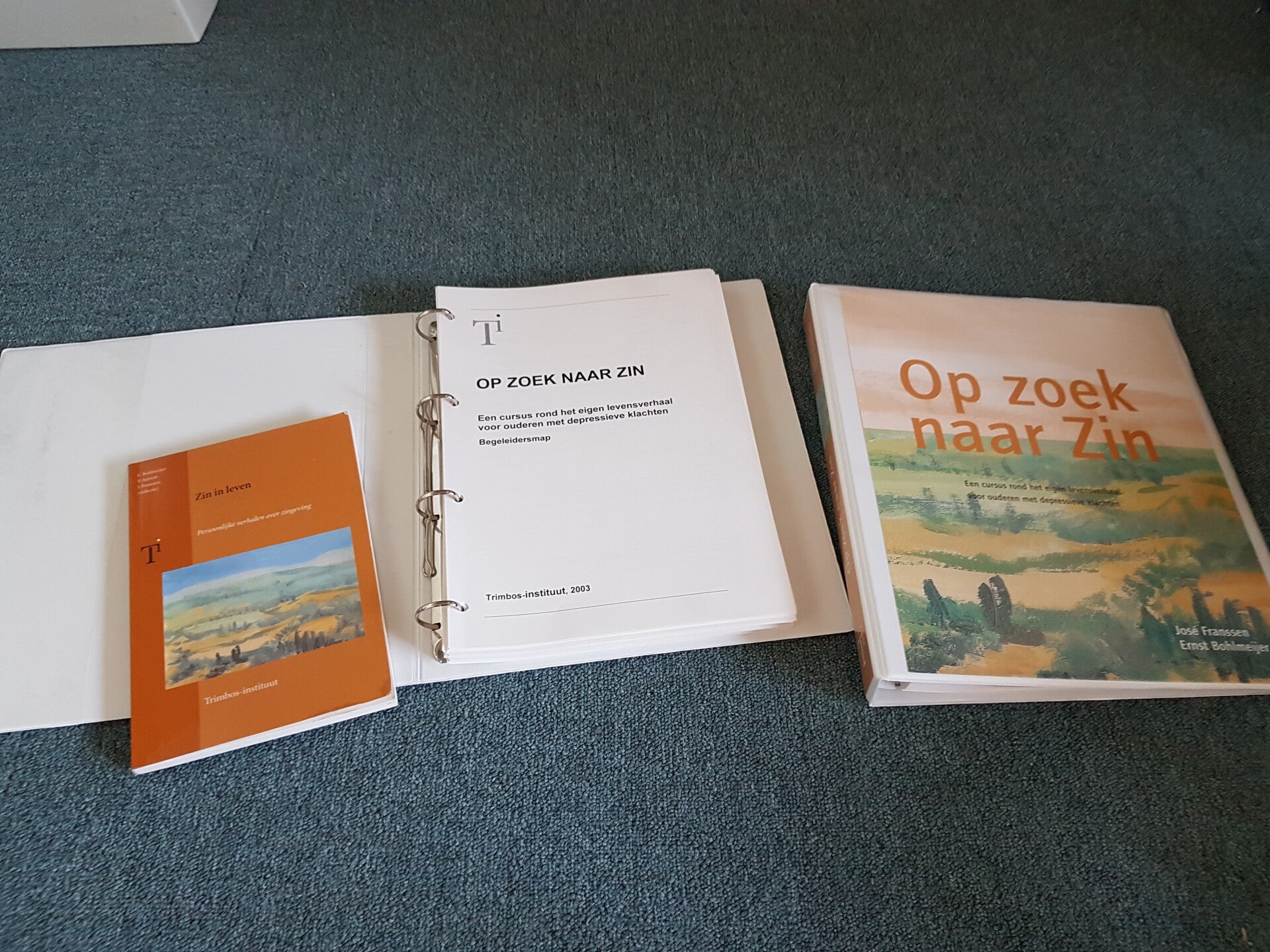 Op zoek naar Zin, 2 mappen en 1 boekje. Depressieve ouderen Trimbos Cursus rond het eigen levensverhaal, docenten en deelnemers map en instructie